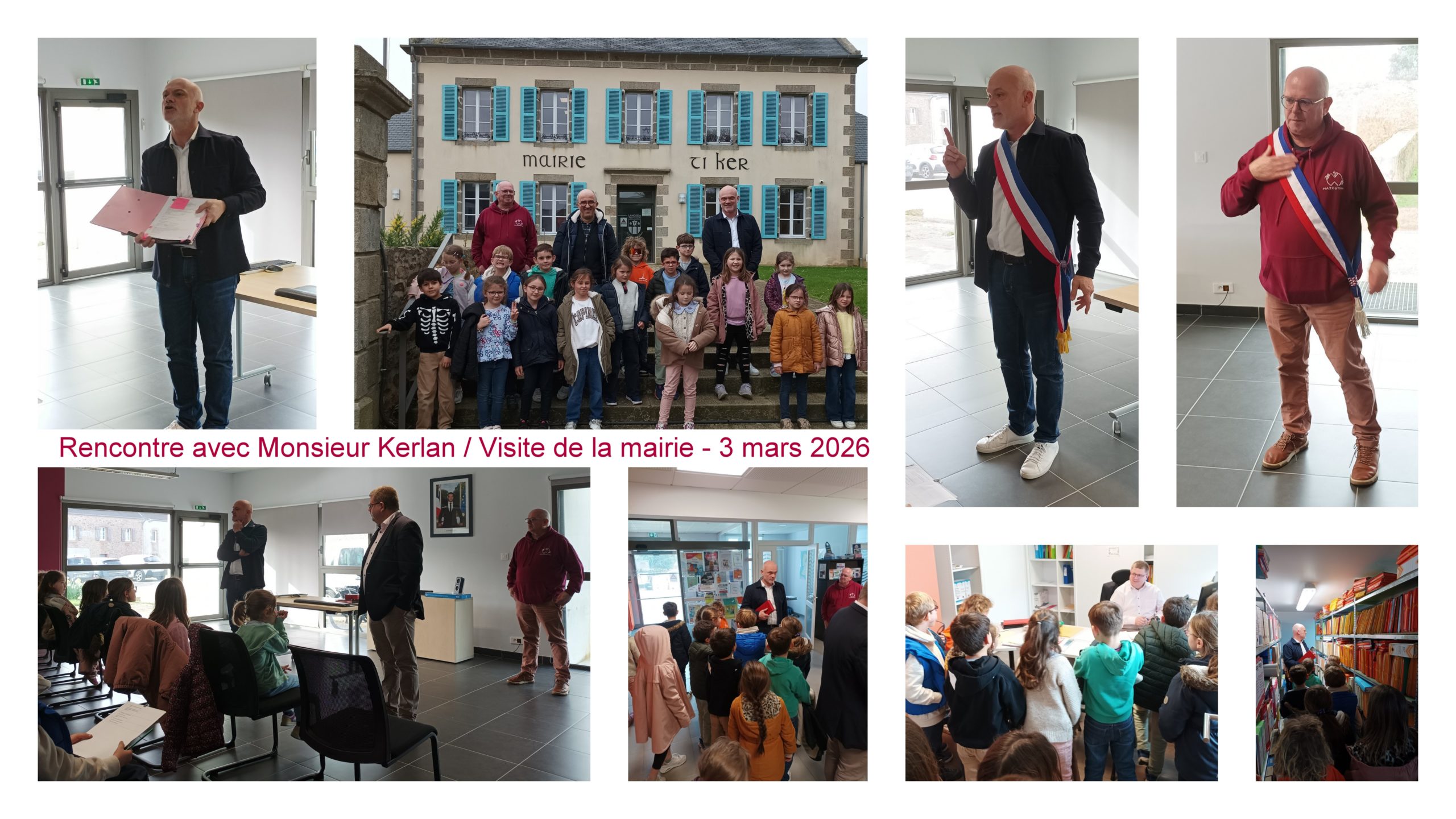 Jeudi 3 mars, la classe de CE1-CE2, s’est rendu à la mairie pour rencontrer Mr Kerlan. Nous lui avons posé beaucoup de questions. Ensuite il nous a fait visiter la mairie.
